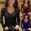 Camisa de mujer de manga larga con cuello en V de encaje y rombos